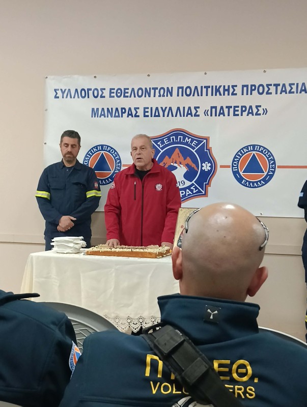 Η ΕΠΟΜΕΑ ευχαριστεί θερμά τον Σύλλογο Εθελοντών Πολιτικής Προστασίας Μάνδρας Ειδυλλίας «Πατέρας» για την πρόσκληση και τη φιλοξενία και εύχεται μια δημιουργική και ασφαλή χρονιά, γεμάτη δράσεις, συνεργασίες και προσφορά προς την κοινωνία.